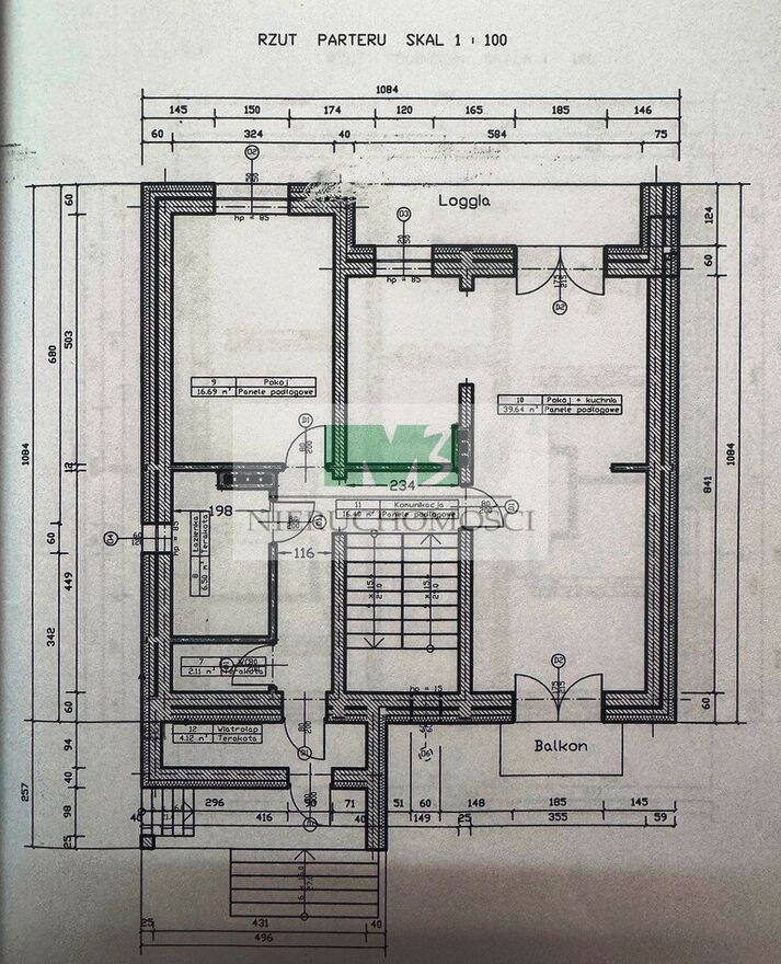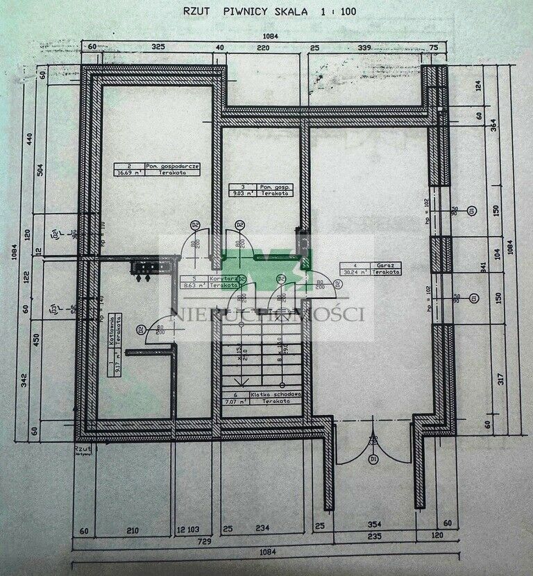 zewnętrzne. Na podłogach w podpiwniczeniu wylewka, w holu